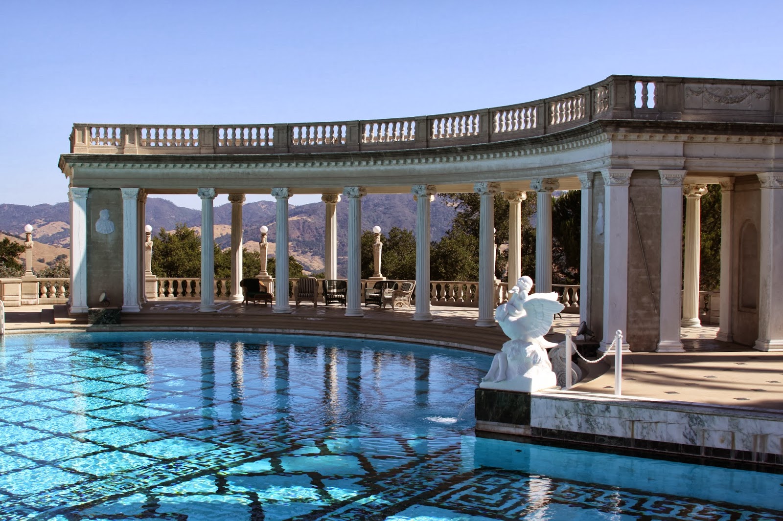 El Castillo Hearst cuenta con una maravillosa piscina en el exterior, la Piscina de Neptuno, basada en temas grecorromanos. Las imágenes hablan por sí solas. Durante años tuve en mi dormitorio una panorámica de este lugar, que con solo mirarla ya te permitía flotar en el limbo: