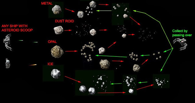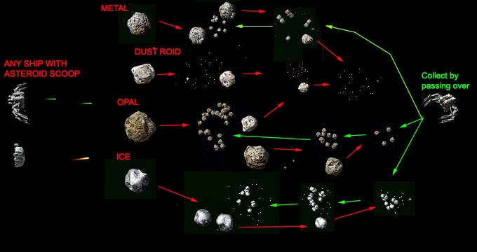 Según su tipo (carbonáceos, petro-ferrosos, ferrosos), los asteroides, el polvo estelar y los cometas contienen una gran variedad de materiales valiosos (como el platino y metales pesados) o útiles para la exploración espacial (agua, materiales de construcción y combustibles):