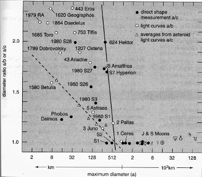 Hay asteroides de todos los tamaños, hasta llegar a los pequeños fragmentos que caen a la tierra como meteoritos. Algunos asteroides pequeños son una débil agregación de piedras arenosas que pueden descomponerse con un impacto o perturbación gravitatoria, como muestra esta imagen de Itokawa visitado por la sonda japonesa Hayabusa: