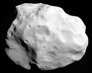 Y llegamos ya al más erótico de los asteroides, Eros, visitado por la sonda NEAR. Parece que cuando le dieron su nombre aún no eran conscientes de que tenía estas formas tan sensuales :-)