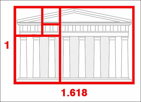 Uno de los casos más citados es el de las proporciones del Templo de Atenea en la acrópolis de Atenas, el Partenón. De hecho, el nombre phi para la razón áurea proviene de Phidias (Fidias), el arquitecto que coordinó toda la obra y ejecutó las esculturas que la acompañaban.