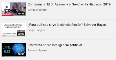 - La conferencia El Dr Asimov y el Sexo, en la Hispacon 2019 celebrada en Valencia.