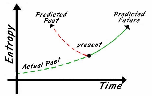 Es decir, no hay nada que explique porqué la segunda ley de la termodinámica no funciona también en sentido temporal contrario (hacia el pasado).